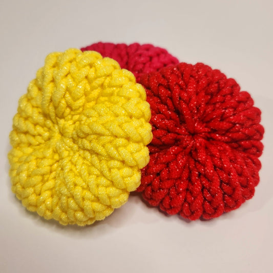 Introducing our handmade nylon scrubbies, a vibrant and eco-friendly alternative to traditional sponges. Say goodbye to inefficient cleaning tools and hello to durable, reusable scrubbies that make dishwashing a breeze. Simply toss them in the dishwasher for a fresh start every time.